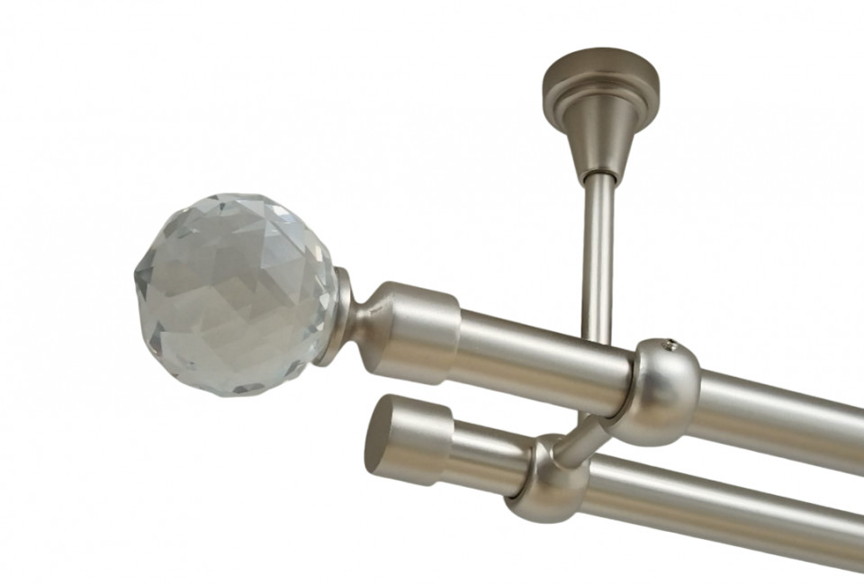 Galerie dubla kula crystal fara inele prindere tavan 19/19 mm crom mat