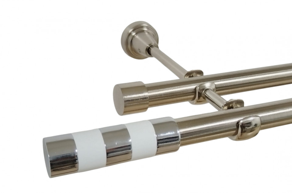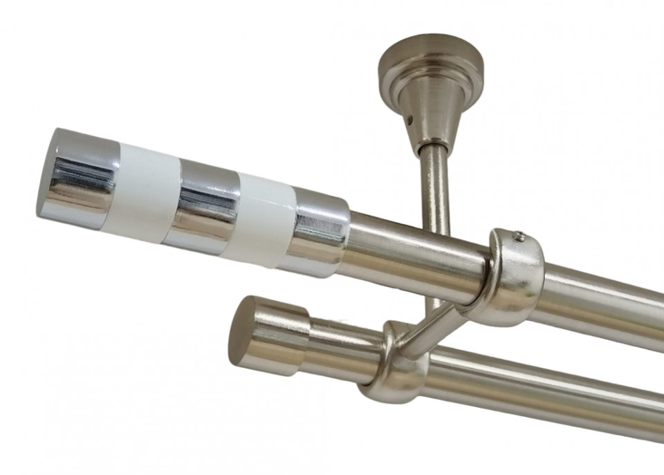 Galerie dubla cilindru alb fara inele prindere tavan 19/19 mm inox