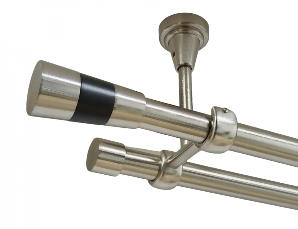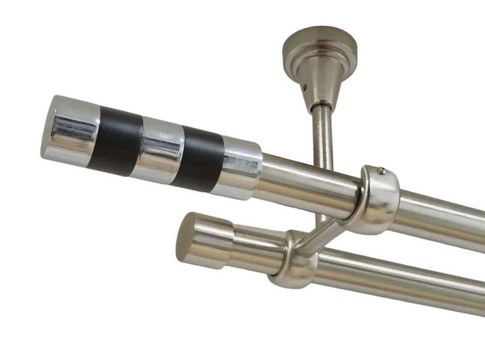 Galerie dubla valeo negru fara inele prindere tavan 19/19 mm inox