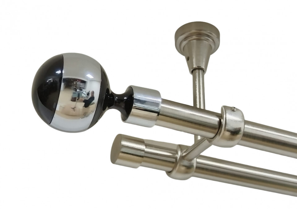Galerie dubla kula negru fara inele prindere tavan 19/19 mm inox