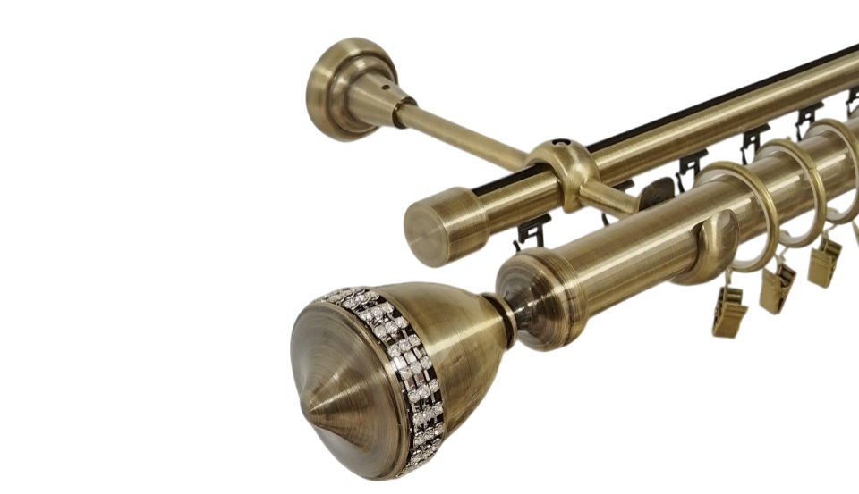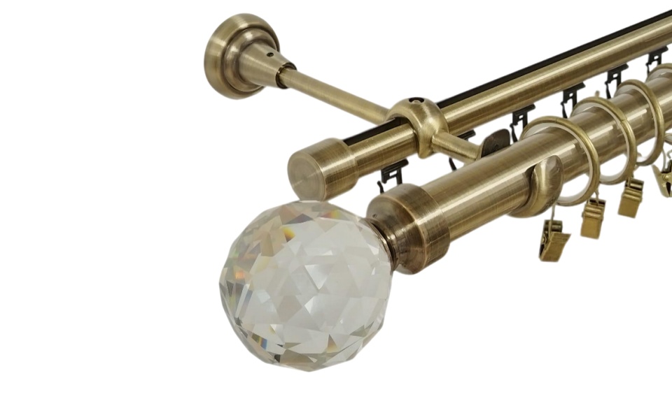 Galerie dubla kula crystal, teava neteda si profil,grosime 25 si 19mm, aur antic