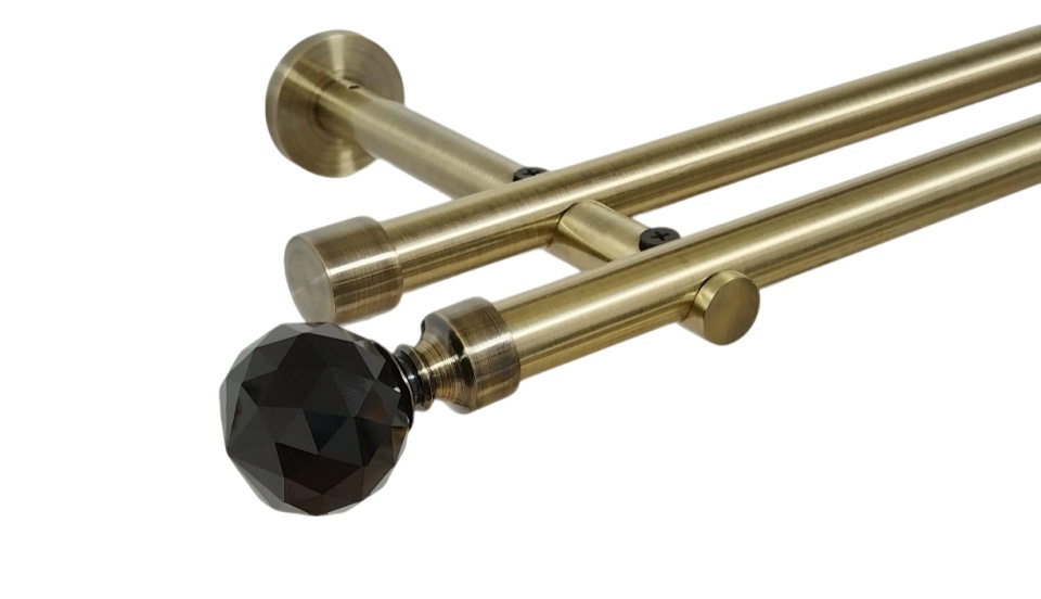 Galerie dubla picior universal fara inele prindere perete kula crystal negru 19/19 mm aur antic