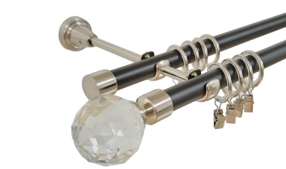 Galerie dubla duo - Kula crystal 19/19 - negru lucios + crom mat
