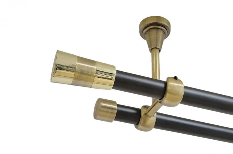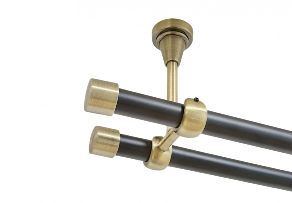 Galerie dubla galaz prindere tavan 19 mm negru aur antic