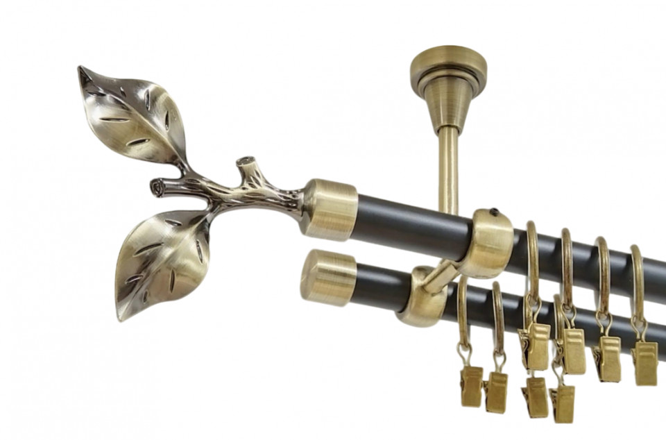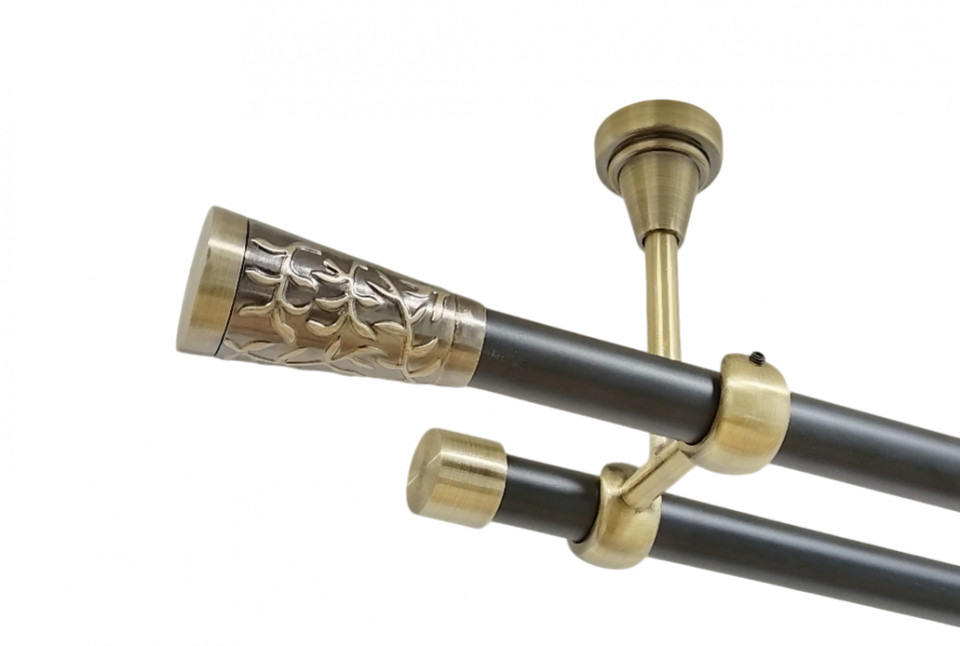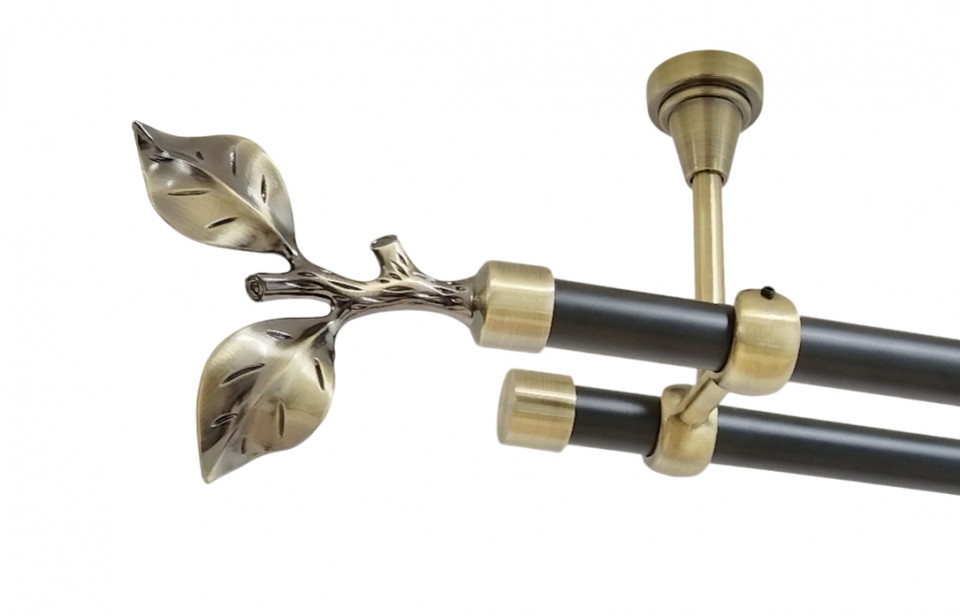 Galerie dubla flora fara inele prindere tavan 19/19 mm negru aur antic