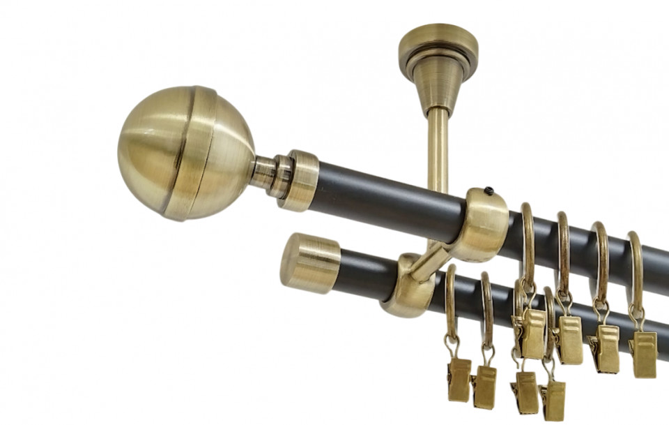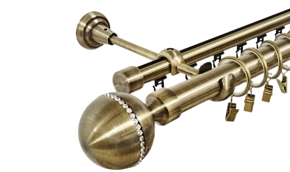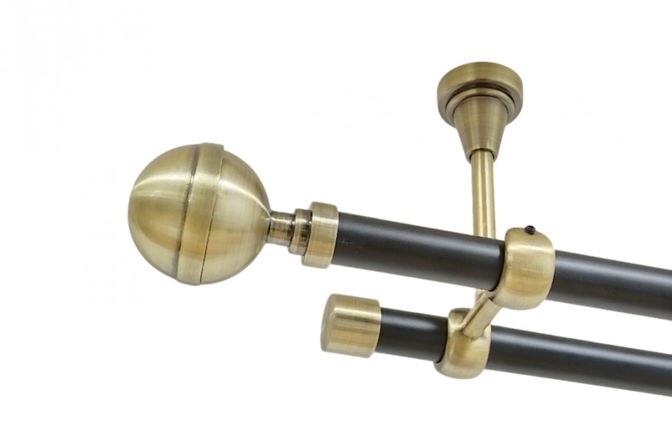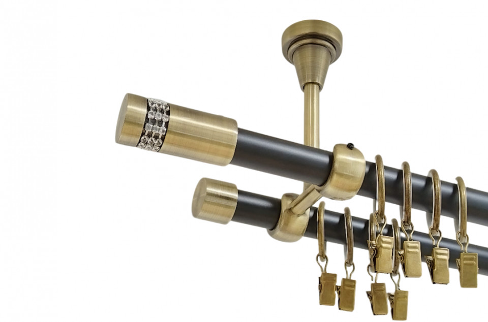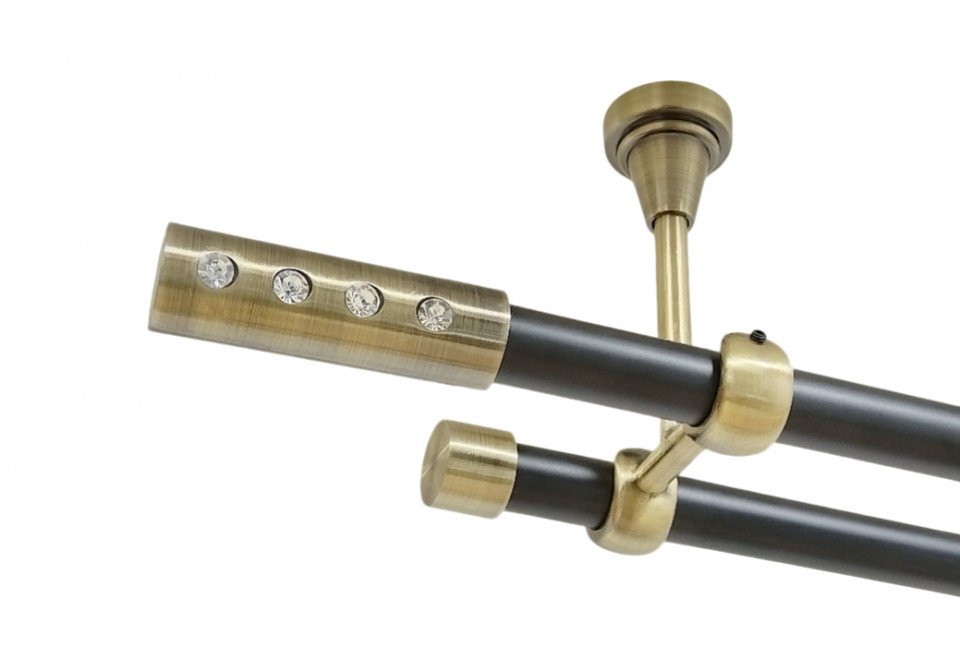 Galerie dubla kula crystal fara inele prindere tavan 19/19 mm negru aur antic