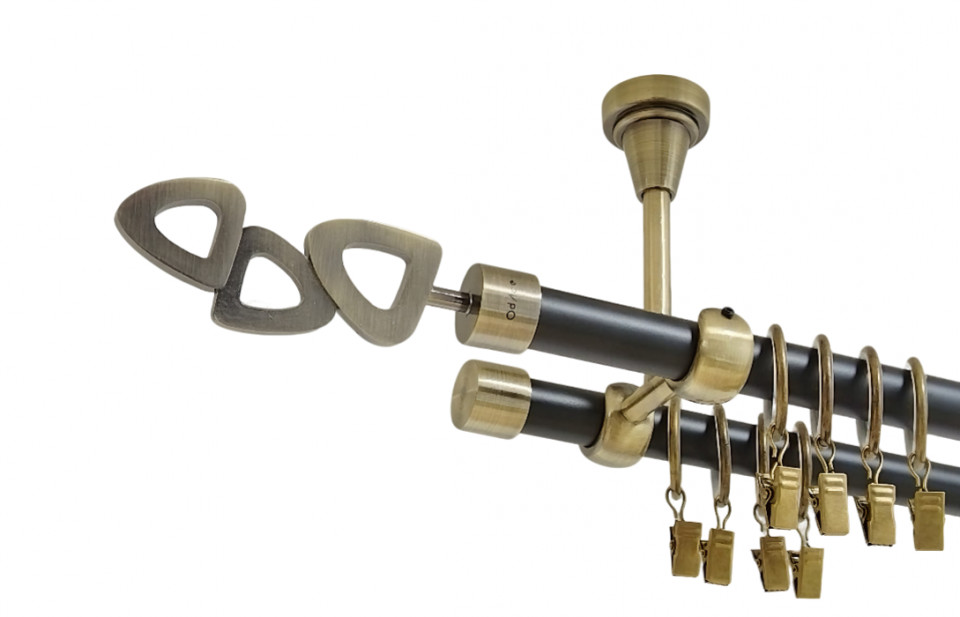 Galerie dubla hak fara inele prindere tavan 19/19 mm negru aur antic