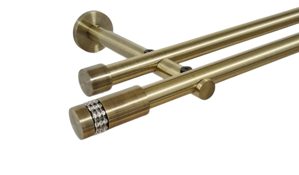 Galerie dubla twist picior universal fara inele prindere perete kula crystal 19/19 mm aur antic