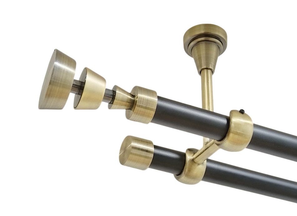 Galerie dubla galaz fara inele prindere tavan 19/19 mm negru aur antic