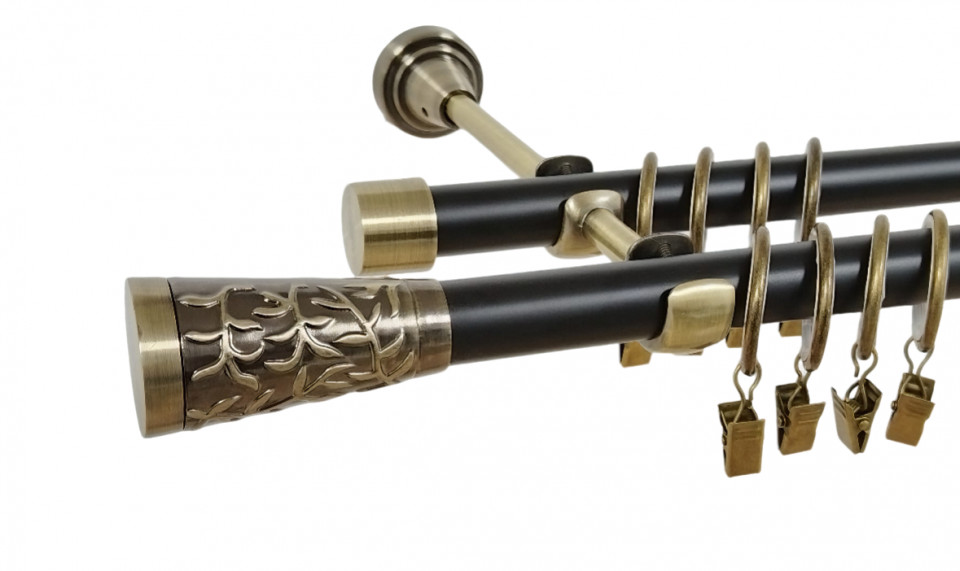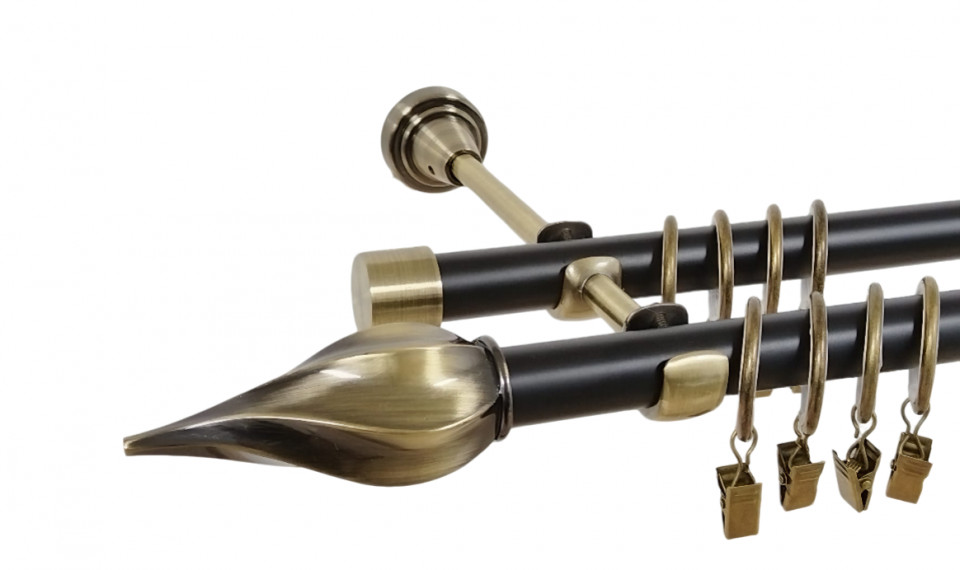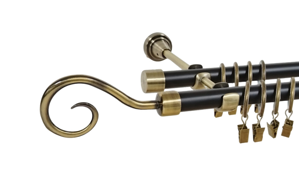 Galerie dubla duo FLORA 19/19 mm negru aur antic