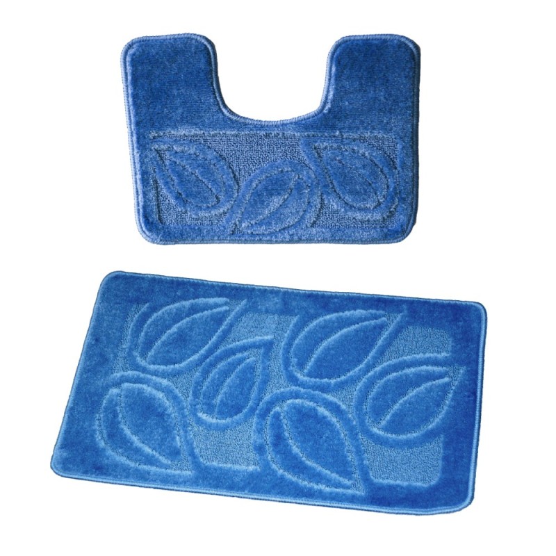 Set 2 Covorase pentru Baie, Blue, 60 x 100 cm, 50 x 60 cm, Antiderapante, Model Flora