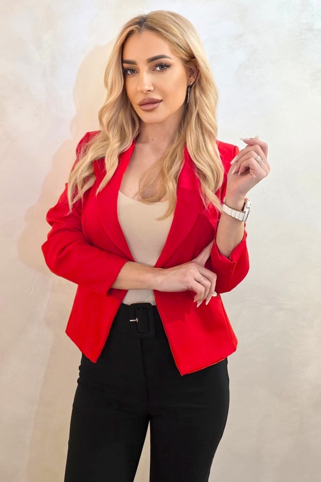 Sacou subtire, scurt CALIS, cu buzunare decorative, Rosu