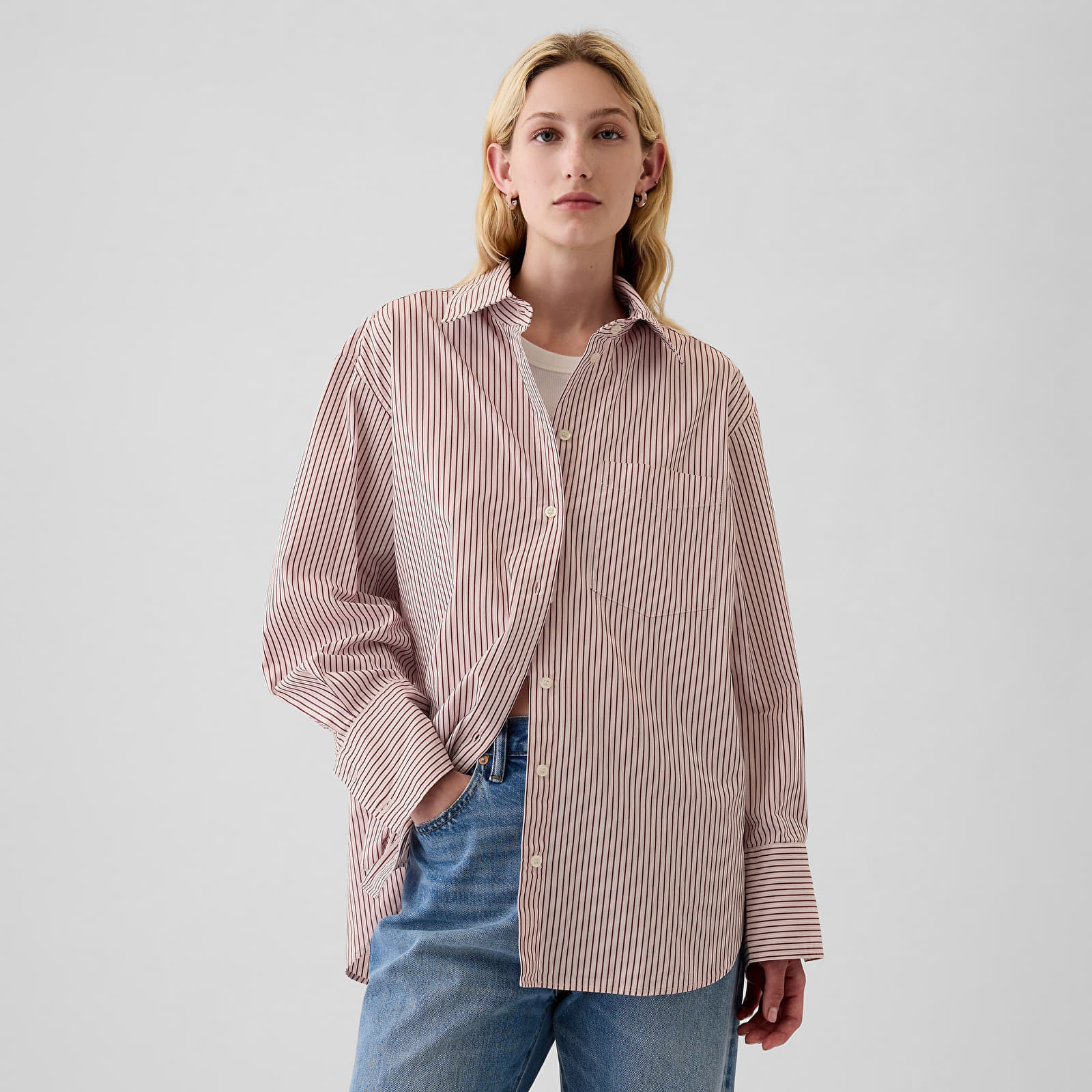 Camasa GAP Cuff Big Shirt Red Pink Stripe