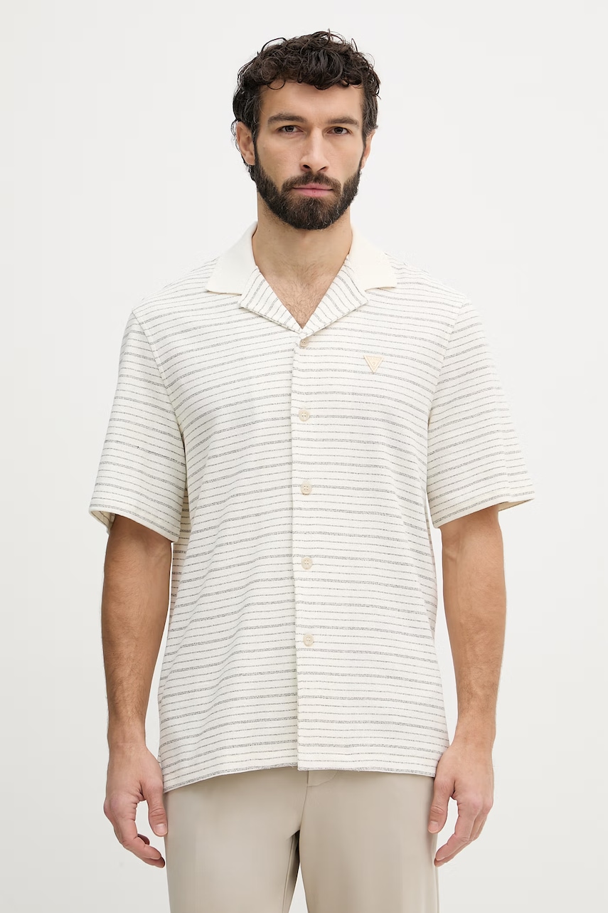 Guess cămașă bărbătească cu adaos de in RYDEN