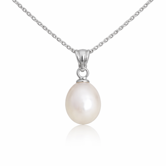 Colier Perla Naturala Alba 6 8 mm, Lacrima, Pandantiv Argint 925 KASKADDA