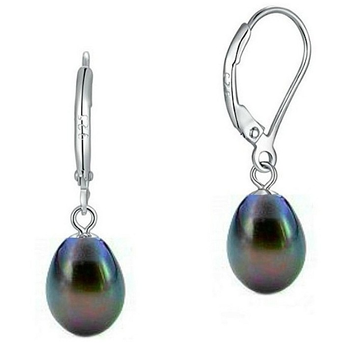 Cercei Perle Negru-Albastrui Lacrima, Argint 925, Tortita Inchisa KASKADDA