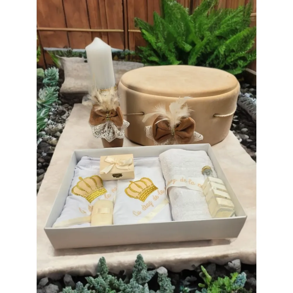 Set complet cu Trusou Botez + Cutie Buretata pentru hainute + Lumanare - TB924