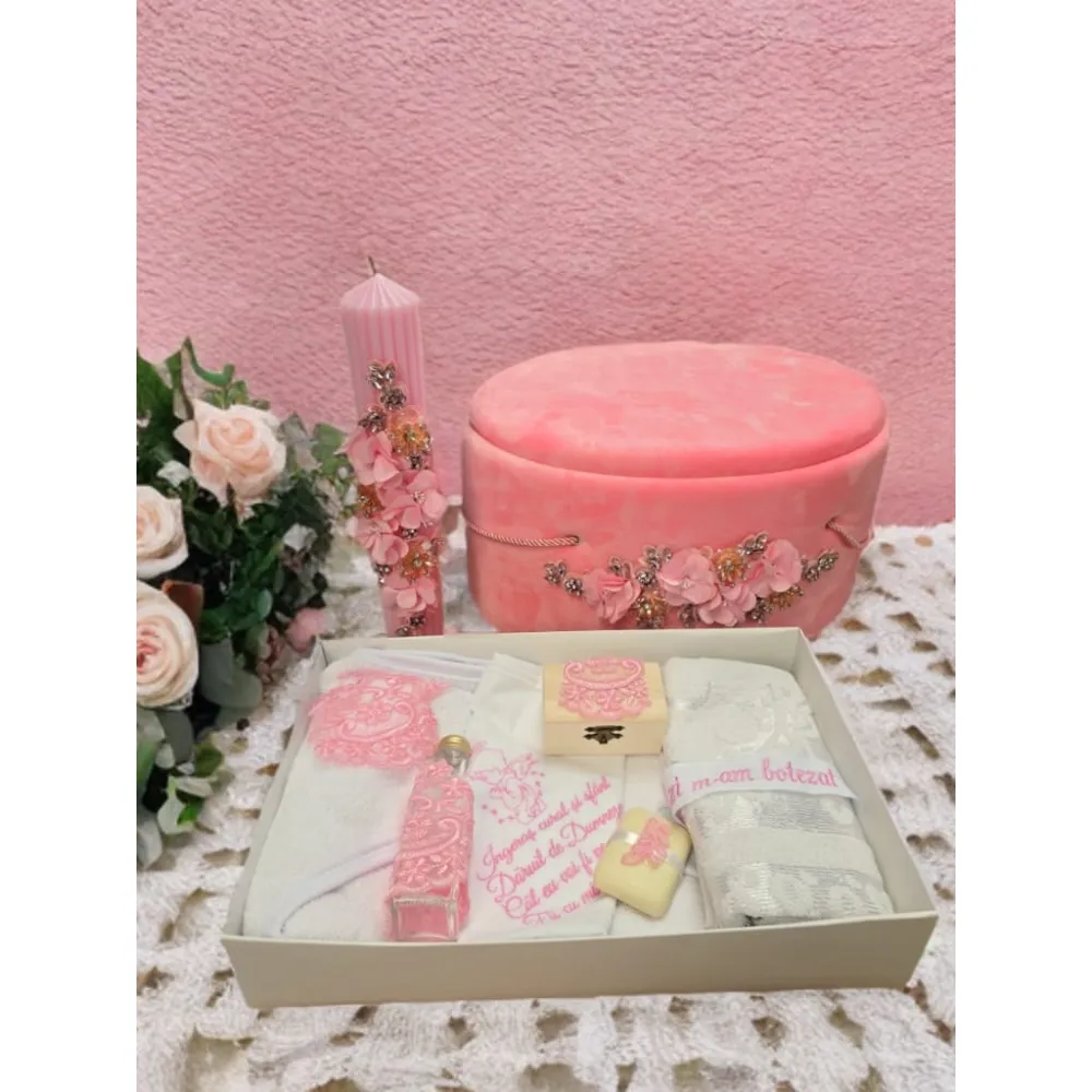 Set complet cu Trusou Botez + Cutie Buretata pentru hainute + Lumanare - TB923