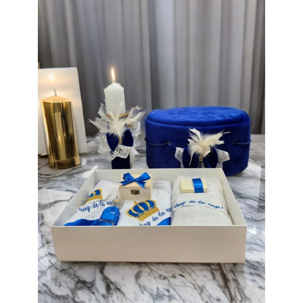 Set complet cu Trusou Botez + Cutie Buretata pentru hainute + Lumanare - TB920
