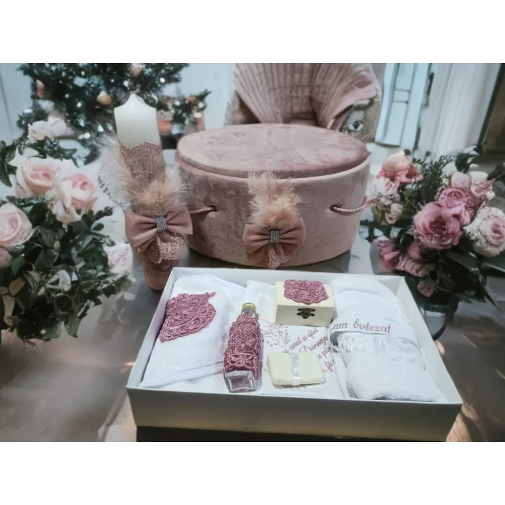 Set complet cu Trusou Botez + Cutie Buretata pentru hainute + Lumanare - TB926