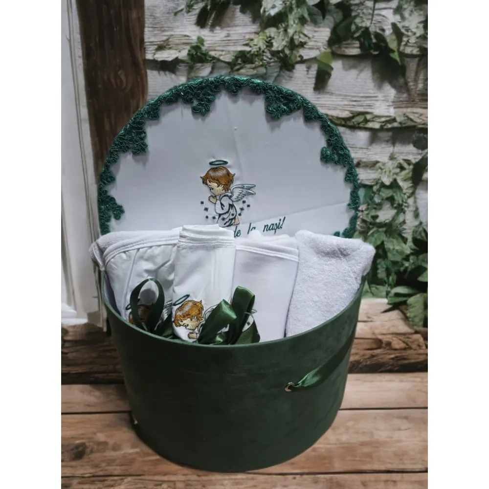 Trusou Botez cu 7 Piese + Cutie Catifea + Lumanare - Verde - TB911