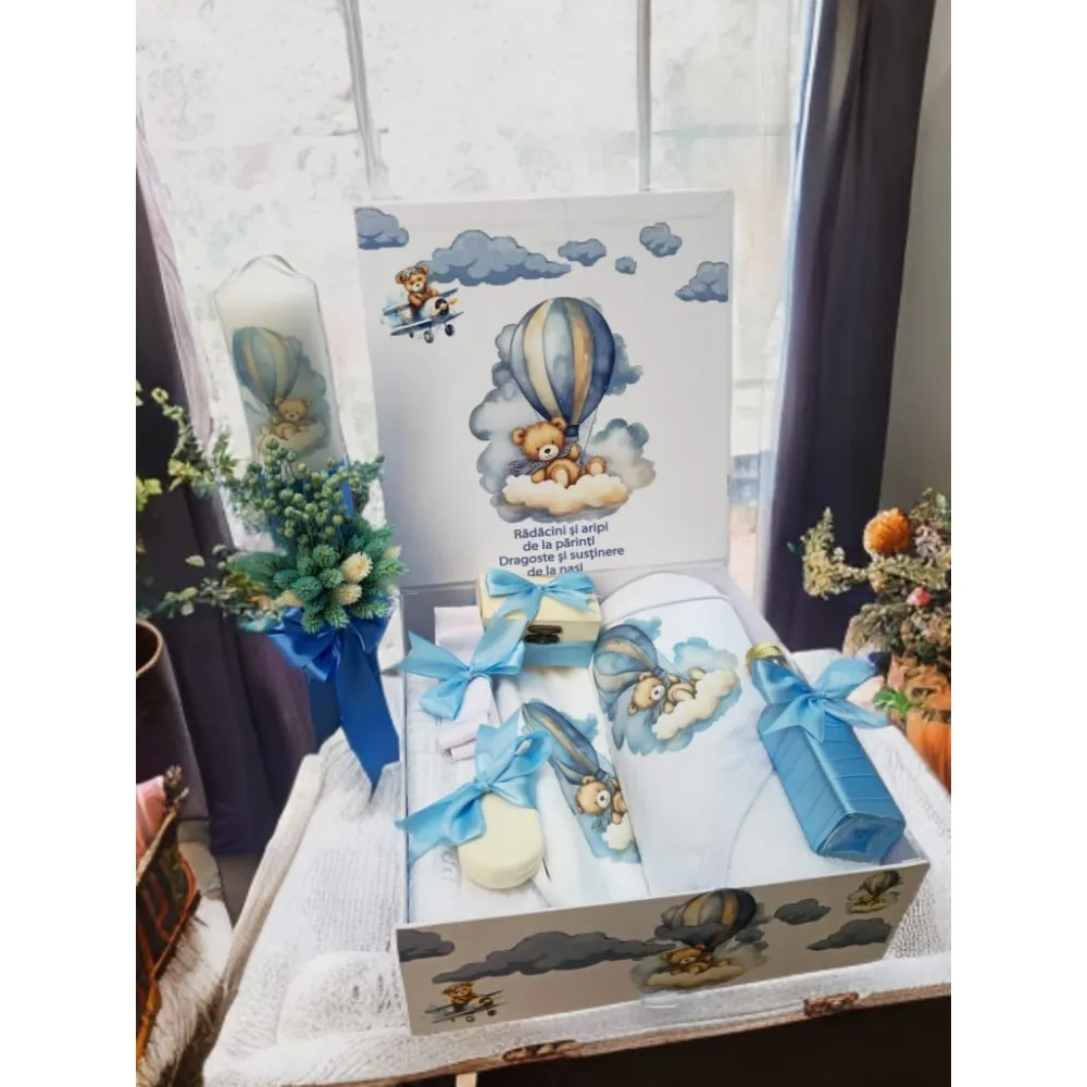 Trusou Botez cu 8 Piese + Lumanare - Ursuletul si Balonul - TB804