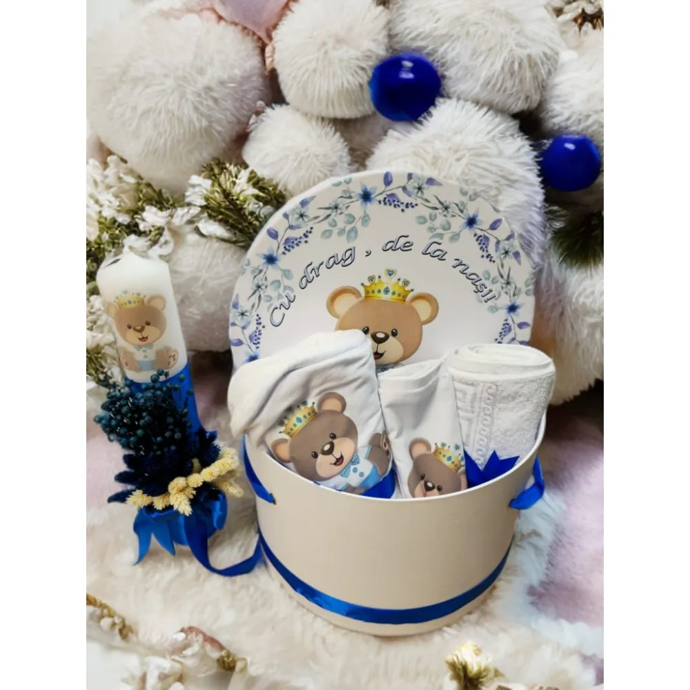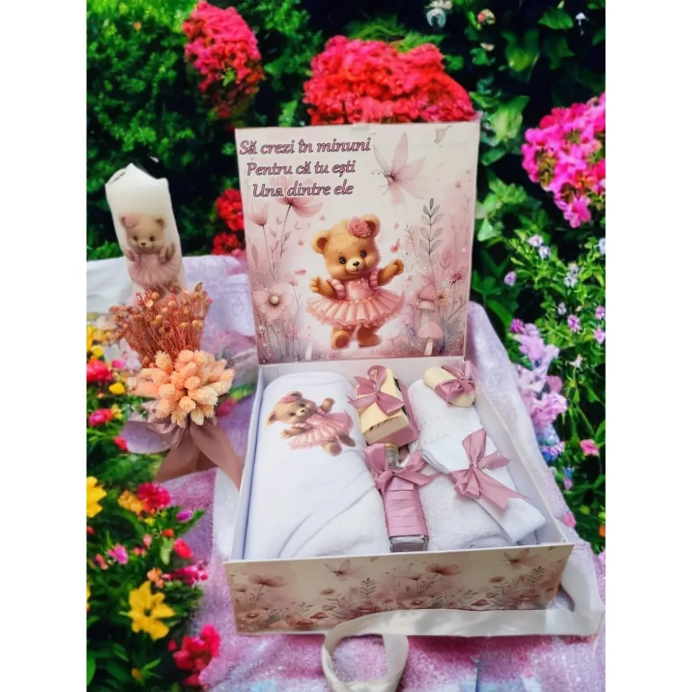 Trusou Botez cu 8 Piese + Lumanare - Model Ursulet cu fundita - TB807