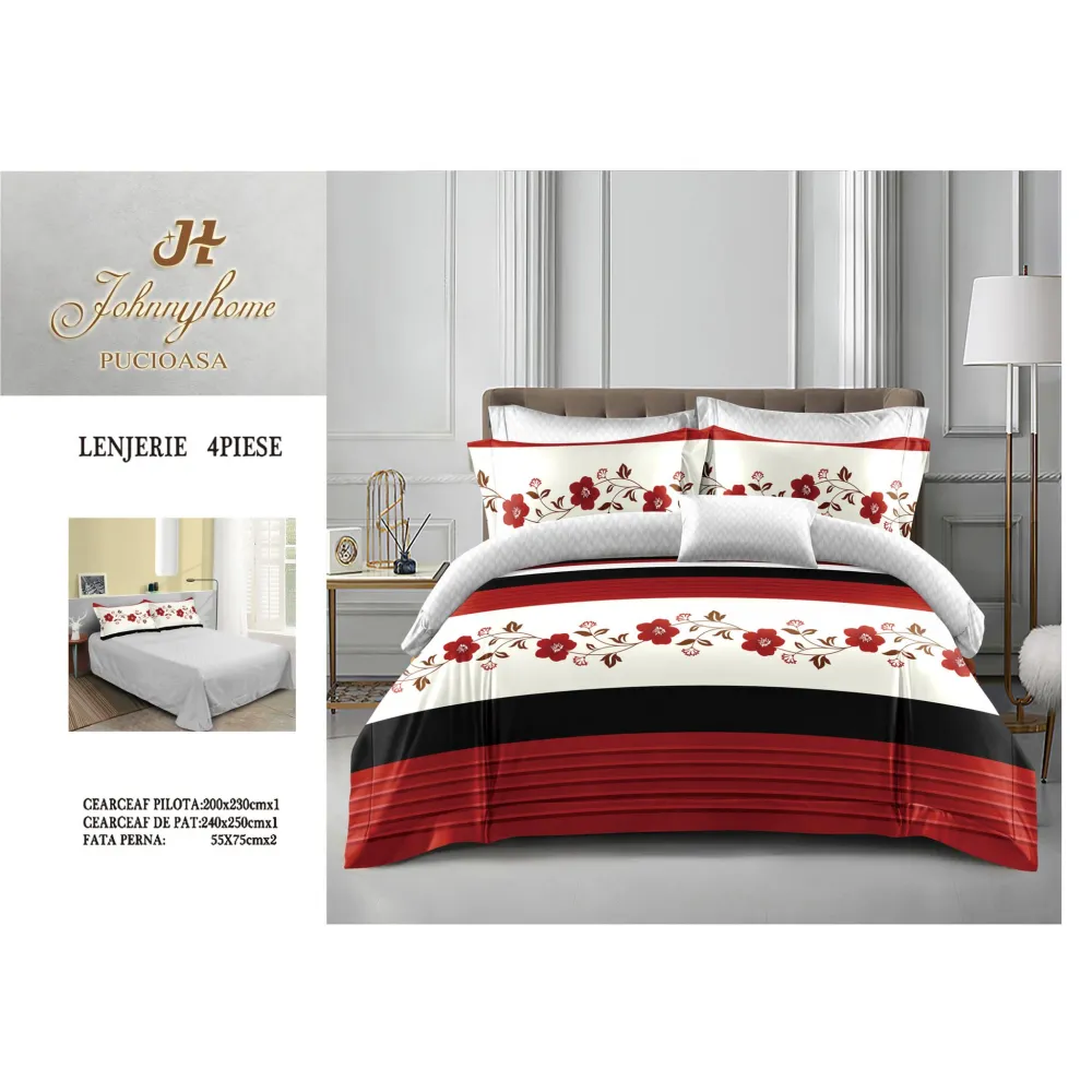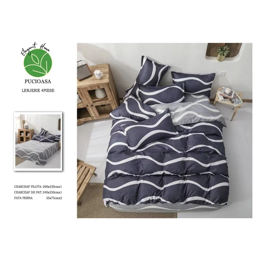 Lenjerie de pat Bumbac Finet 6 piese cu elastic - INVE-33
