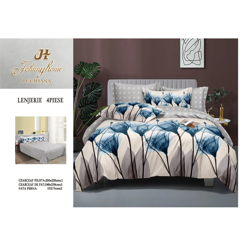Lenjerie de pat Bumbac Finet 6 piese cu elastic - INVE-03