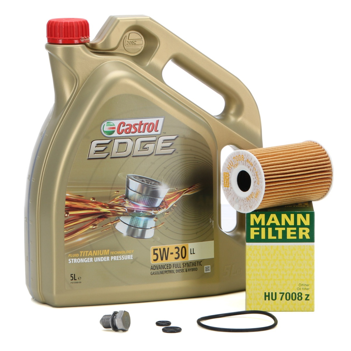 Set Ulei Motor Castrol Edge LL 5W-30 5L + Filtru Ulei Mann Filter HU719 7X + Buson Golire Baie Ulei Oe Audi A2 2000-2005 N90813202
