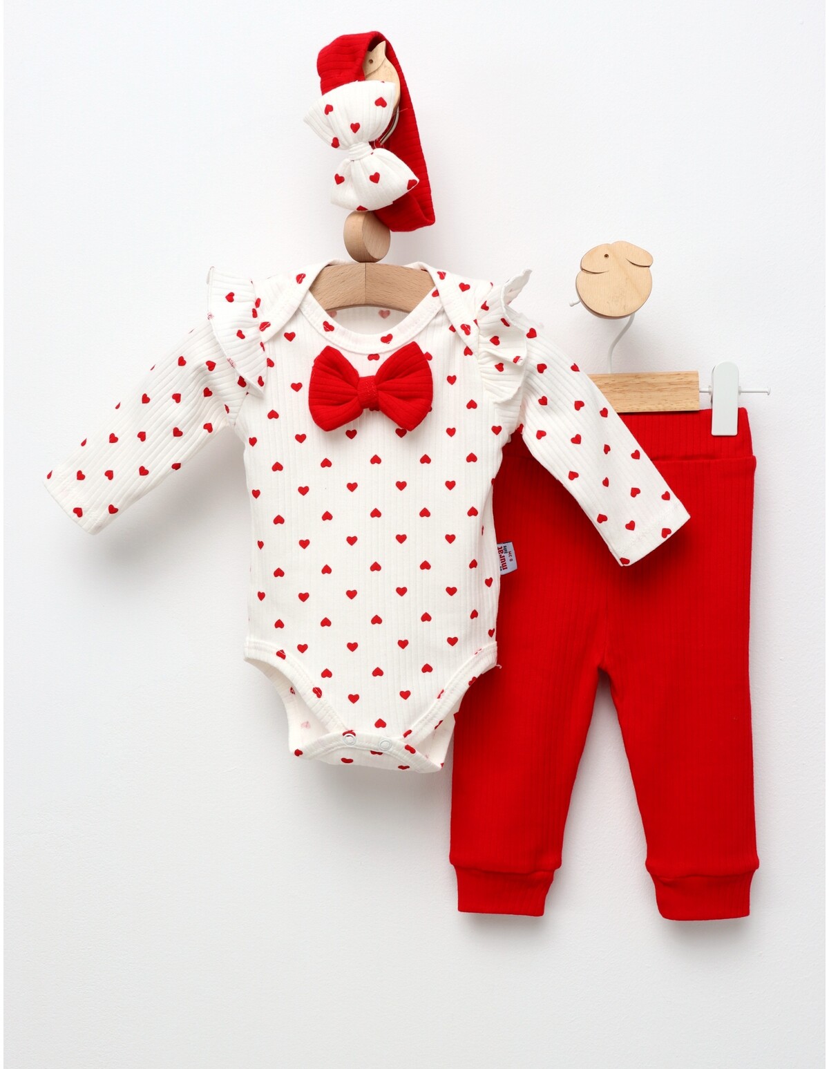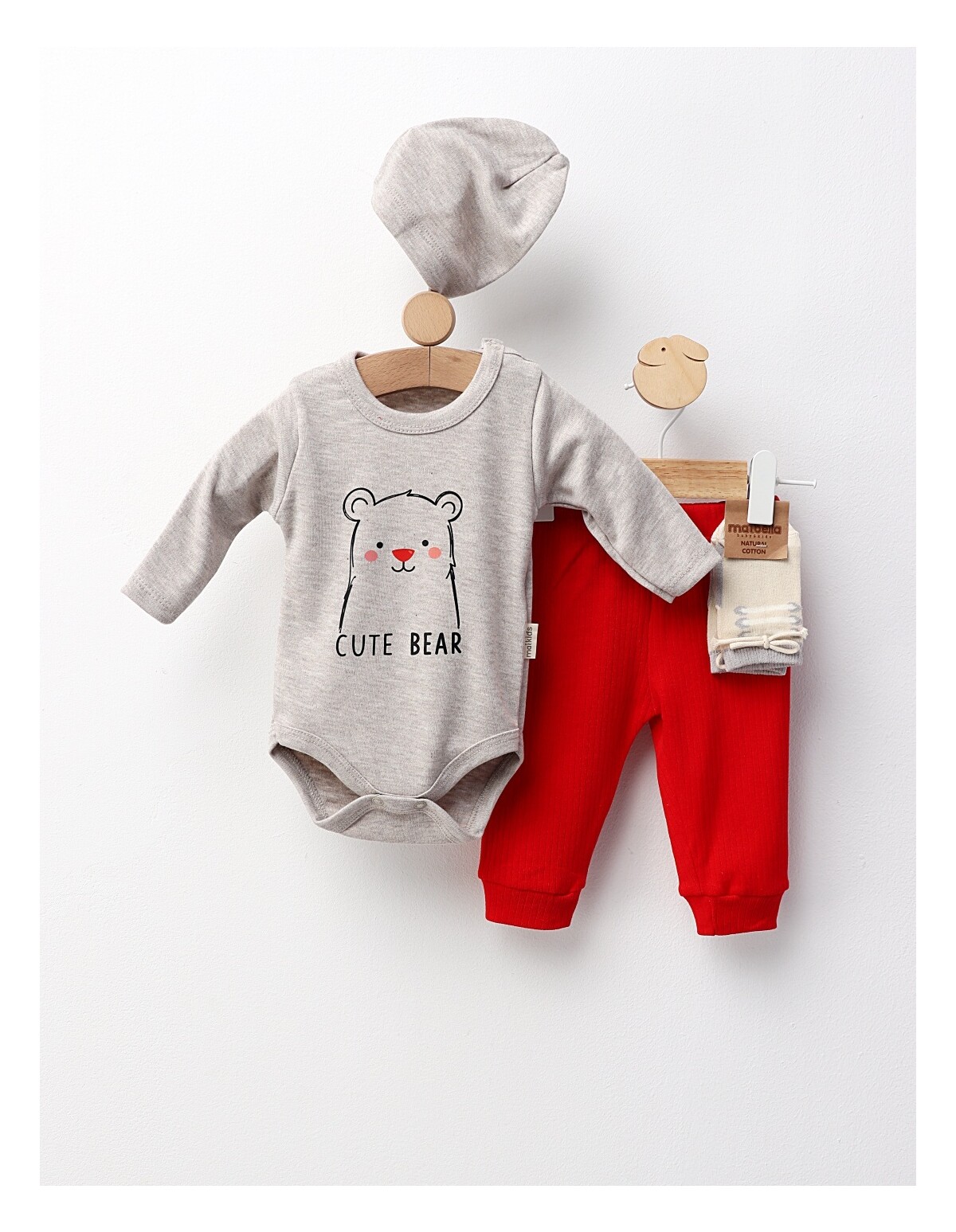 Set 4 piese bebe, Cute Bear, gri-rosu