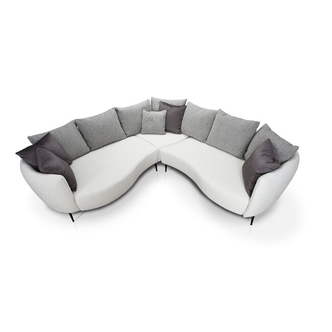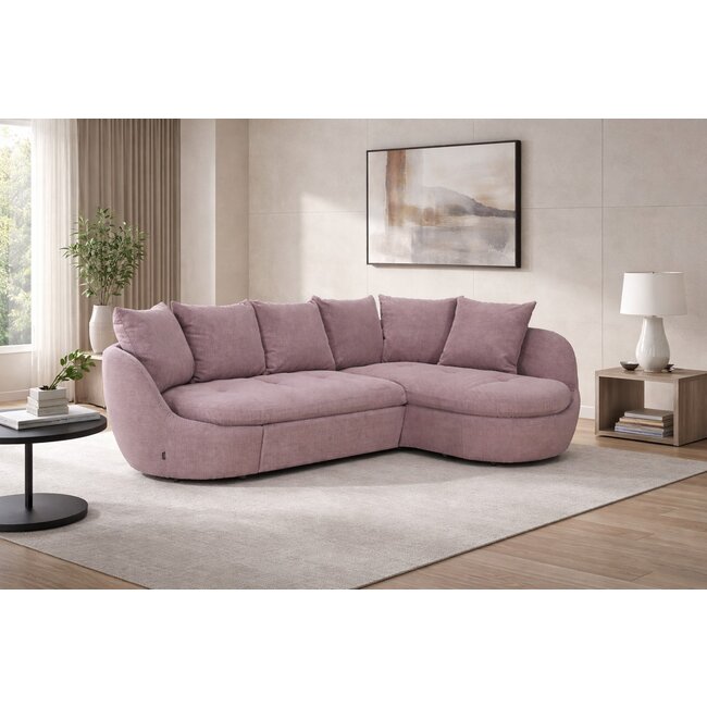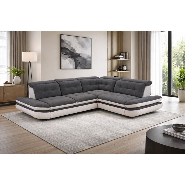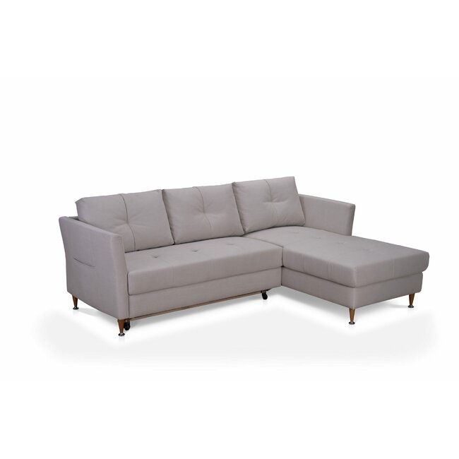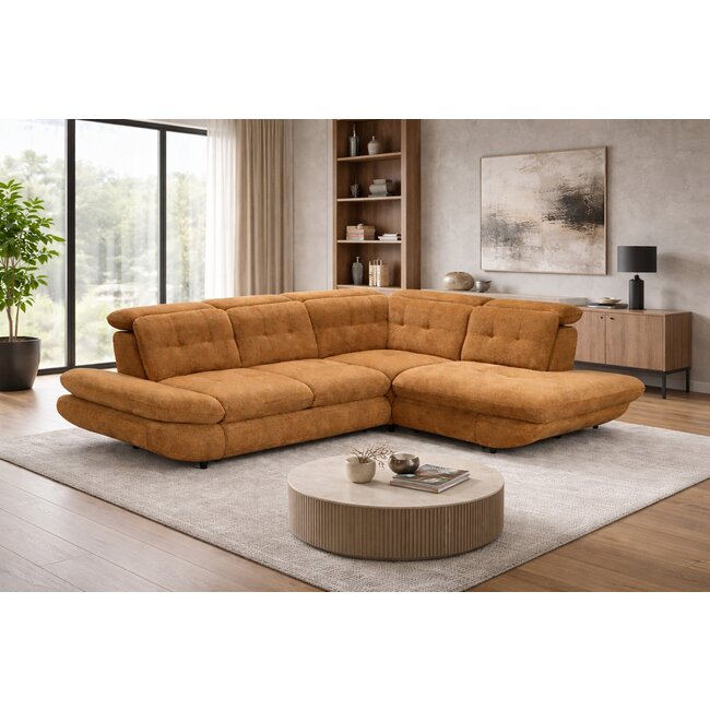 Colțar extensibil Lora, culoare personalizabila - 268x212 cm, tetiere rabatabile, cadru lemn esență tare și PAL, arcuri sinusoidale și poliuretan, picioare metalice H 12,3 cm