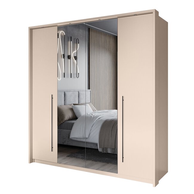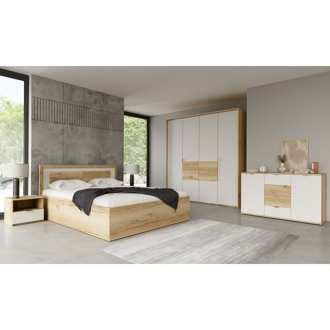 Set dormitor Sardinia, pat 160x200 cm și dulap 4 uși, MDF vopsit, dimensiuni variate, Alb