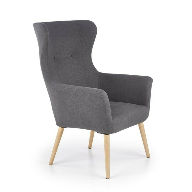 Fotoliu Cotto tapițat din stofă și lemn masiv, 73x76x99 cm, gri închis