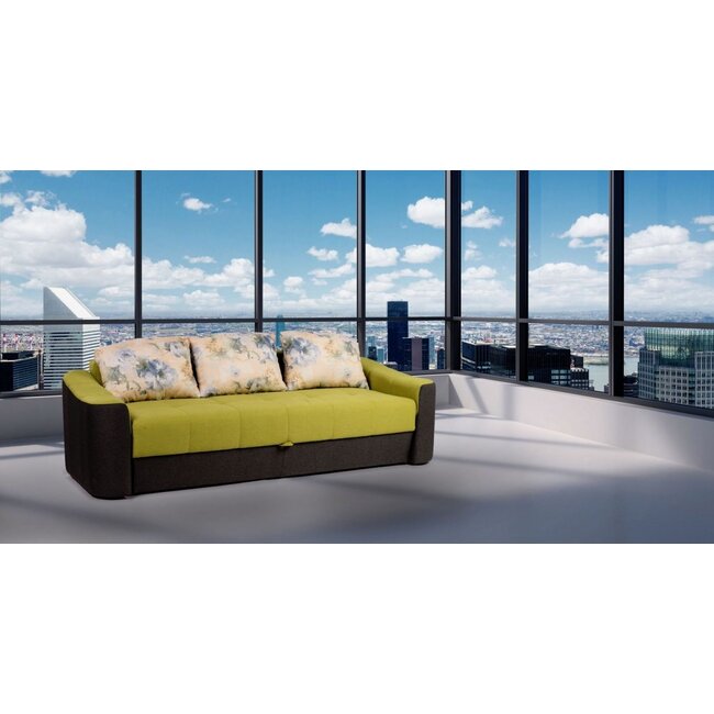 Canapea Karisa extensibilă, extra confort cu ladă integrată și perne incluse, structură lemn masiv și PAL, 241x113x91 cm, culoare personalizabilă