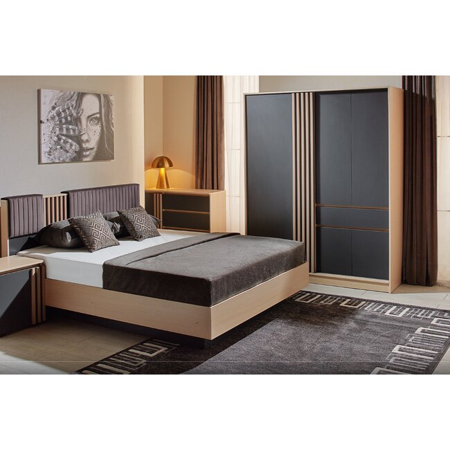 Pat Malta cu somieră Cremona, PAL melaminat, dimensiune 160x200 cm, finisaj grafit