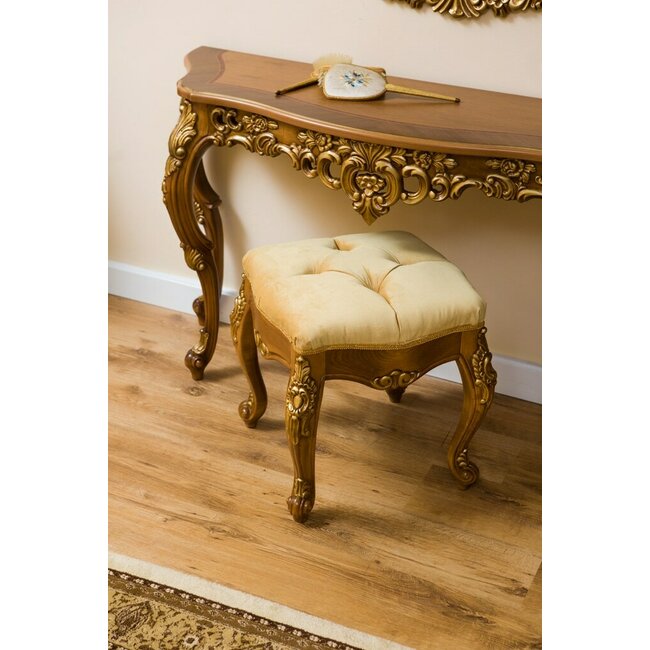 Taburet Bijou, tapițerie catifelată premium, bază metalică aurie, 41x45 cm, bej/auriu