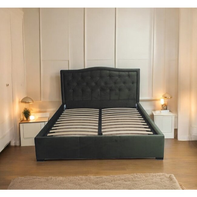 Pat Nisa, tăblie capitonată, ladă depozitare, tapițerie stofă premium, 160x200 cm, Gri Închis