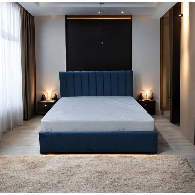 Pat Nisa, tăblie capitonată, ladă depozitare, tapițerie stofă premium, 180x200 cm, Albastru