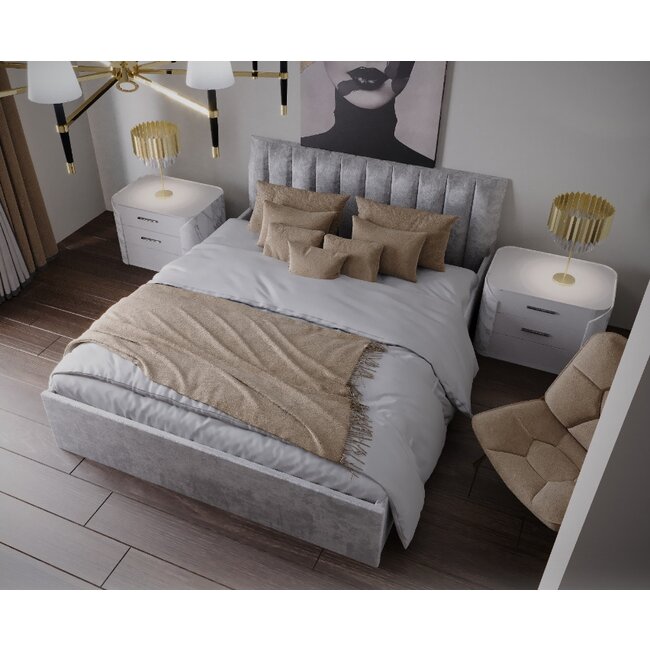 Pat Nisa, tăblie capitonată, ladă depozitare, tapițerie stofă premium, 160x200 cm, Gri Deschis