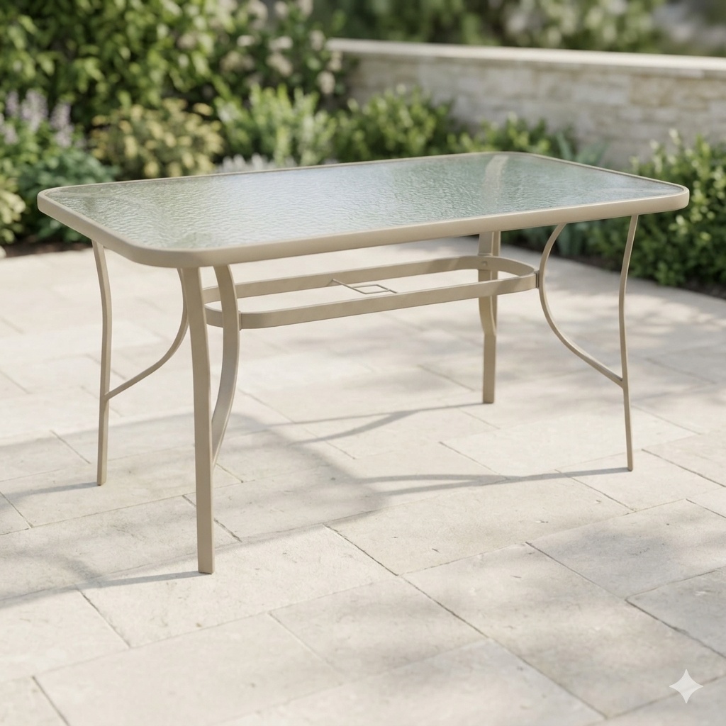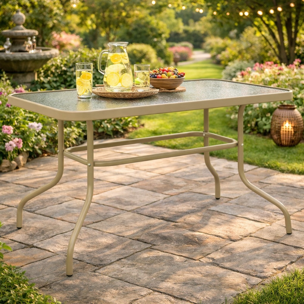 Masă grădină, Pako World, model Valor, metal și sticlă securizată, Champagne, 110 x 60 x 70 cm