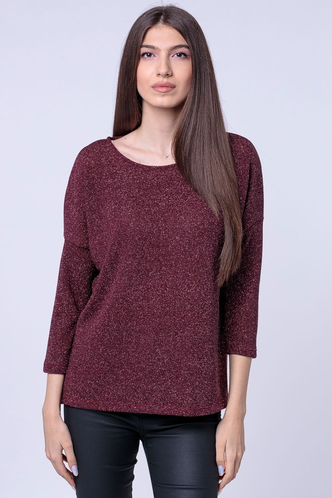 Bluza tricotata bordo cu fir lurex si maneca 3 4 S