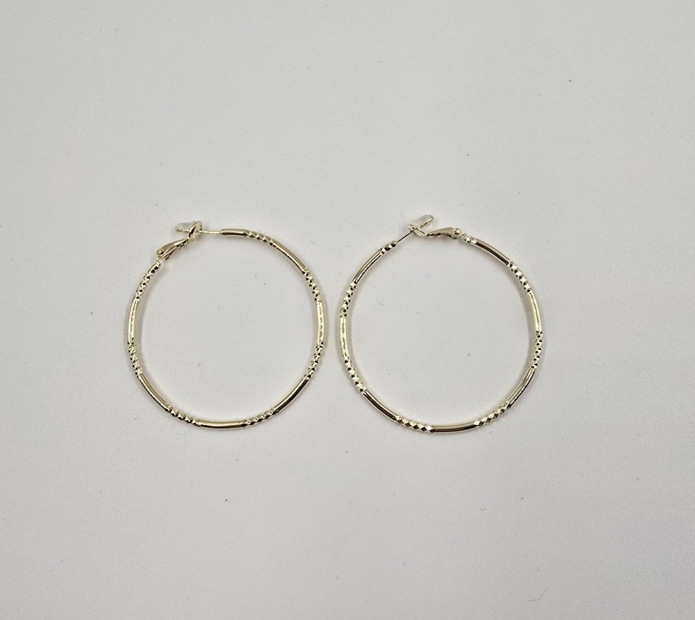 Cercei creole aurii cu tija din argint 925 si detalii texturate