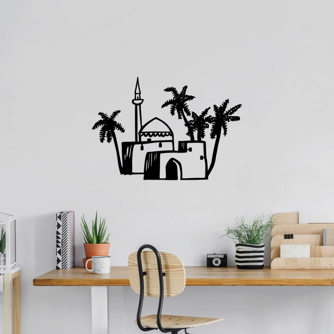 Decoratiune de perete, Mosque, Metal, Dimensiune: 70 x 48 cm, Negru