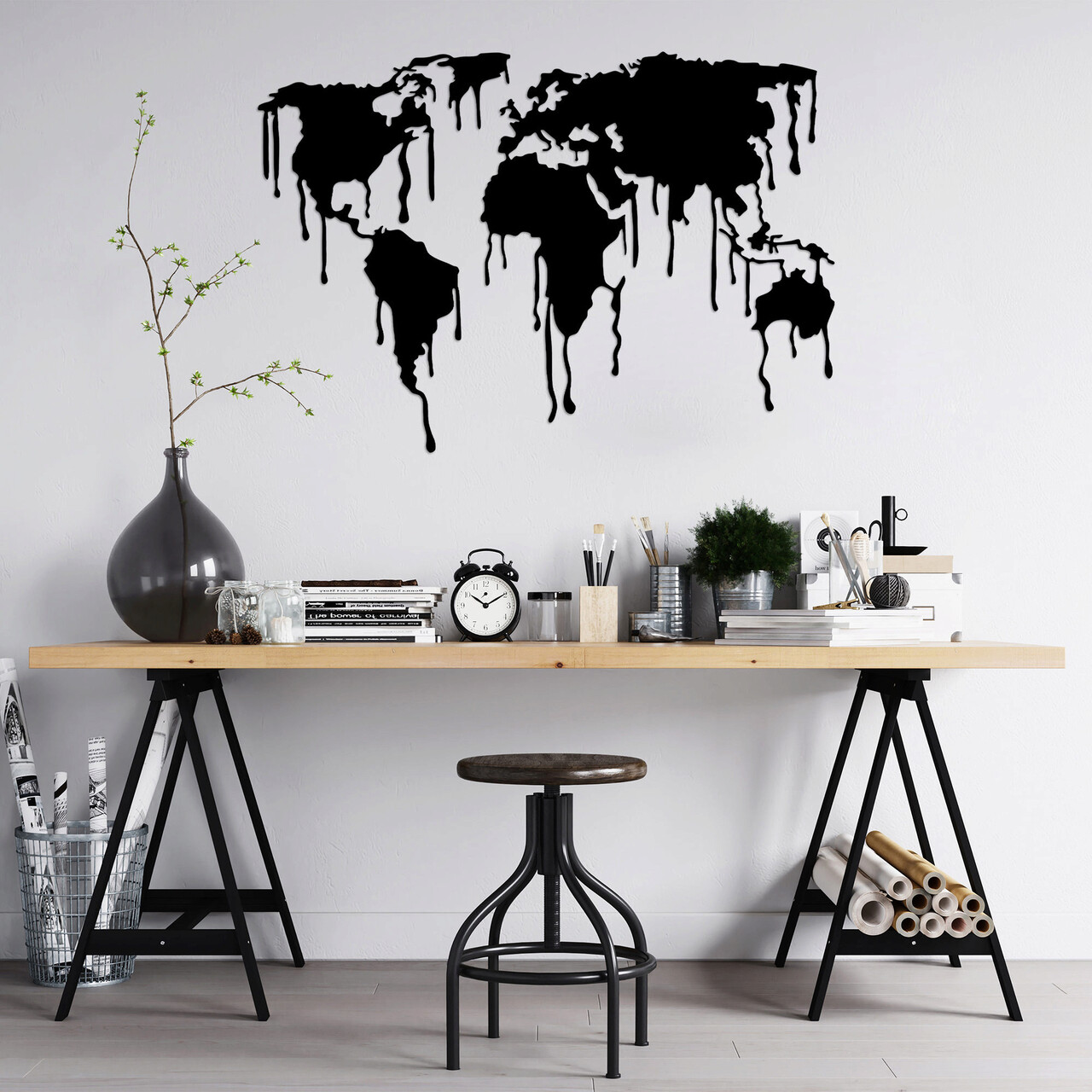 Decoratiune de perete, World Map 2, Metal/lemn, 102 x 3 x 50 cm, Nuc / Negru