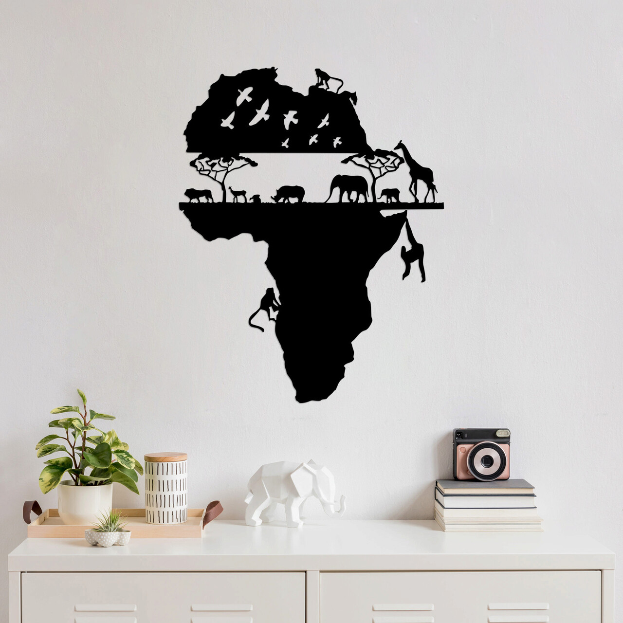 Decoratiune de perete, Animal World Of Africa, Metal, Dimensiune: 58 x 73 cm, Negru