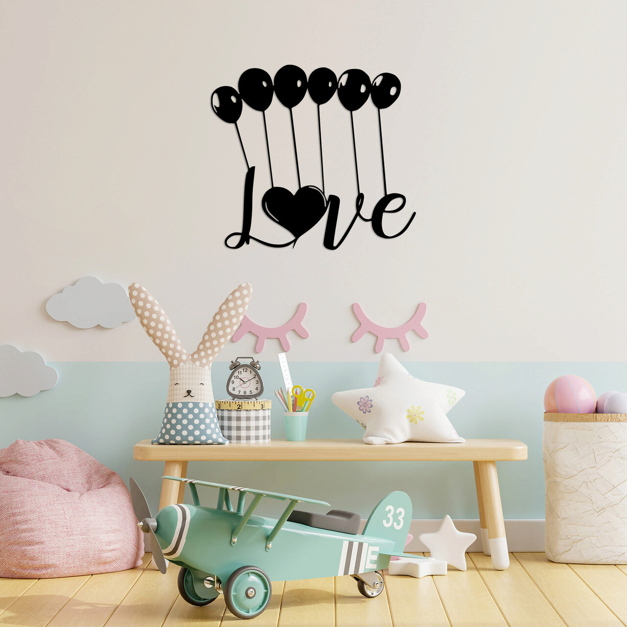 Decoratiune de perete, Balloons Love, Metal, Dimensiune: 70 x 63 cm, Negru