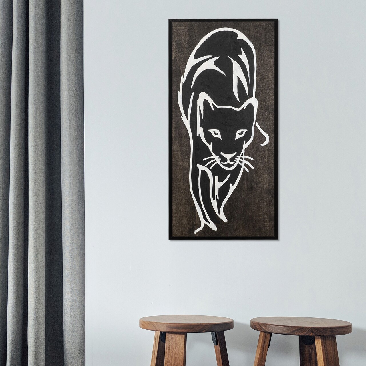 Decoratiune de perete, Leopard, Metal/lemn, Dimensiune: 66 x 3 x 58 cm, Nuc / Negru