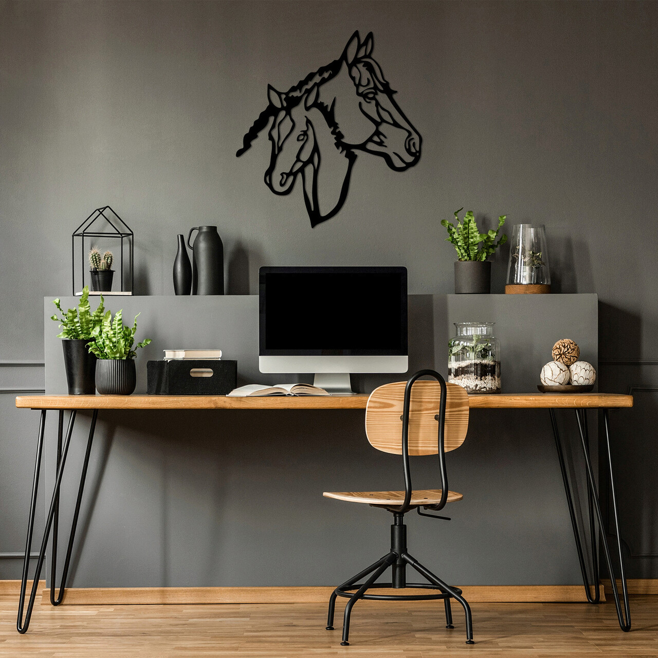 Decoratiune de perete, Horses, Metal, Dimensiune: 70 x 74 cm, Negru