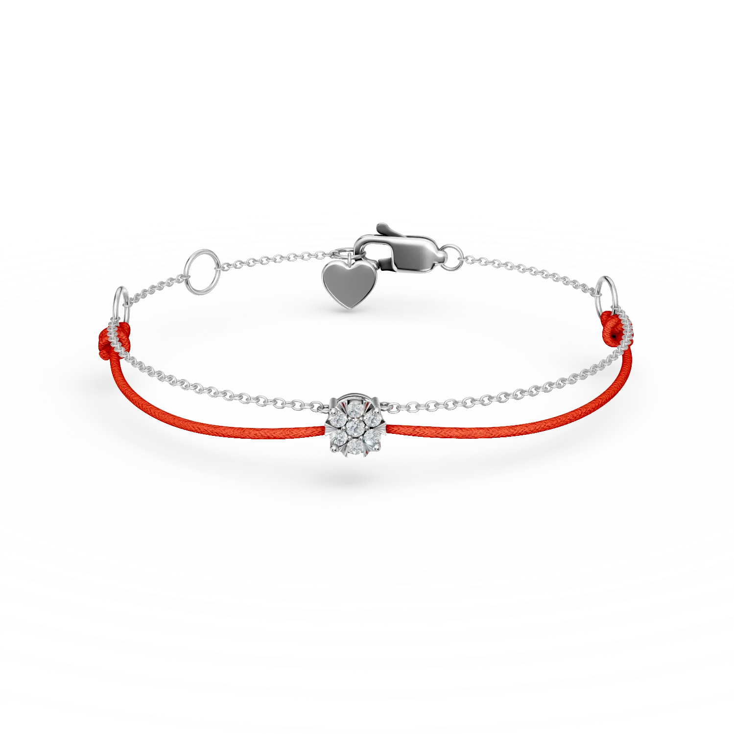 Bratara cu snur rosu si aur alb cu diamante de 0.1ct